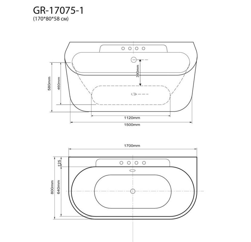 Ванна акриловая Grossman 170 x 80 см, белая, GR-17075-1