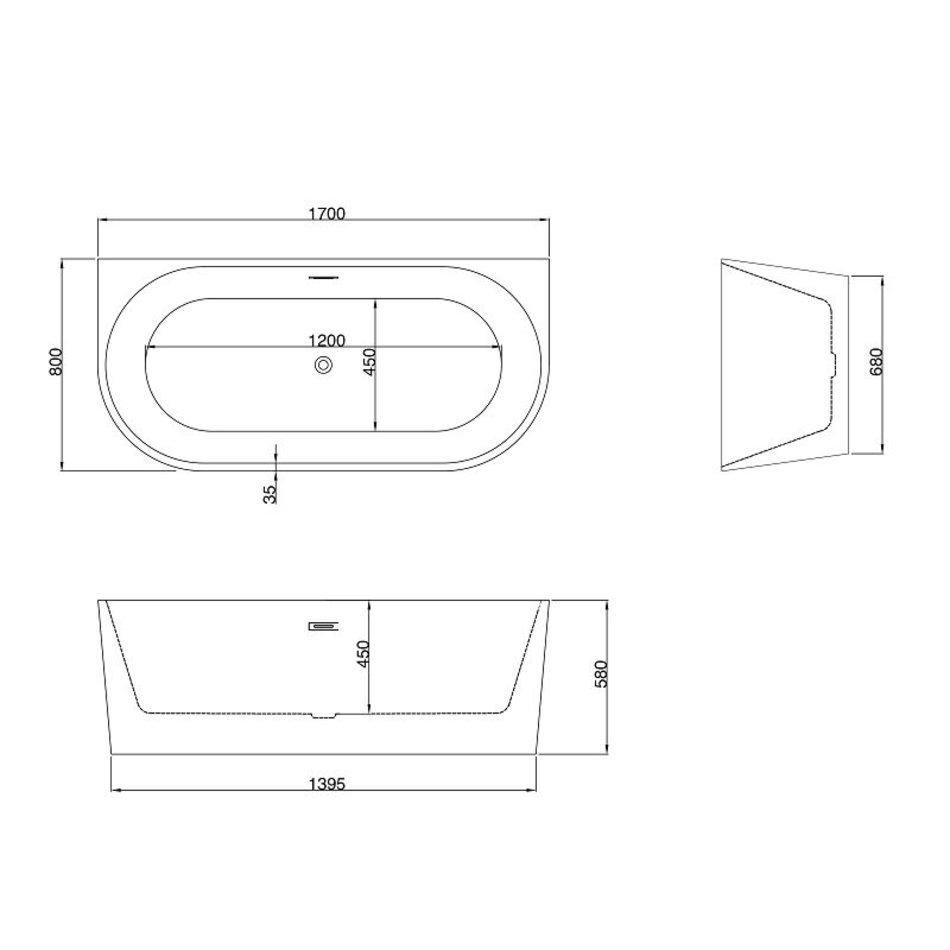Ванна акриловая Grossman Cristal, GR-17071, 170 x 80 см, отдельностоящая, белая