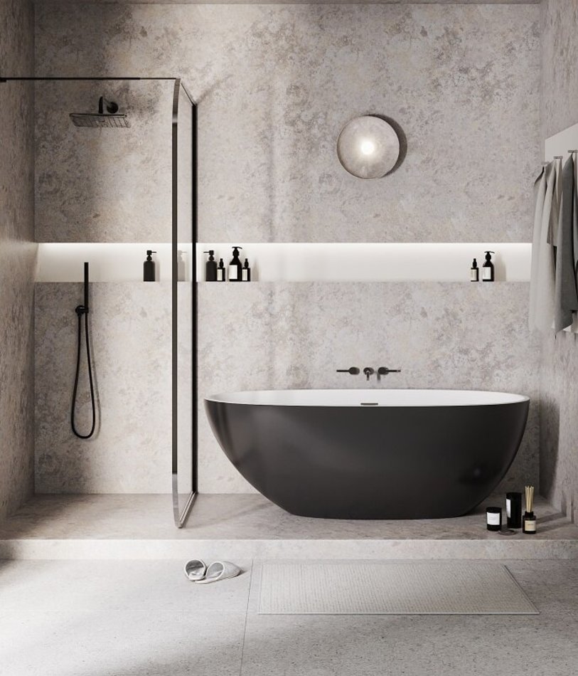 Ванна изготовлена из акрилового листа толщиной 5 мм, что обеспечивает прочность и долговечность изделия. Акриловый материал также приятен на ощупь и сохраняет тепло воды на длительное время, создавая комфорт при принятии ванны. Ванна выполнена в белом цвете внутри, снаружи черный матовый. Дополнительно, данная ванна обладает антибактериальным покрытием, которое предотвращает размножение бактерий и обеспечивает гигиеничность использования. Усиленный каркас ванны обеспечивает стабильность и надежность конструкции, что позволяет использовать ванну без опасений и сомнений. Четырехслойная армировка ванной усиливает ее прочность и структурную целостность, что делает ее стойкой к воздействию внешних факторов и повышает ее долговечность. В комплекте с ванной идет сифон с системой клик-клак, что облегчает слив воды и предоставляет удобство в использовании. Эта отдельностоящая ванна сочетает в себе функциональность, надежность и эстетическое привлекательность, создавая идеальное пространство для релаксации и ухода за собой в вашей ванной комнате.