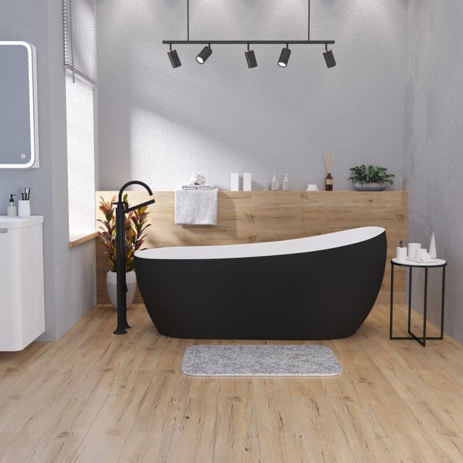 Ванна изготовлена из акрилового листа толщиной 5 мм, что обеспечивает прочность и долговечность изделия. Акриловый материал также приятен на ощупь и сохраняет тепло воды на длительное время, создавая комфорт при принятии ванны. Ванна выполнена в черном матовом цвете.
