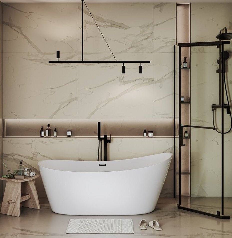 Ванна изготовлена из акрилового листа толщиной 5 мм, что обеспечивает прочность и долговечность изделия. Акриловый материал также приятен на ощупь и сохраняет тепло воды на длительное время, создавая комфорт при принятии ванны. Дополнительно, данная ванна обладает антибактериальным покрытием, которое предотвращает размножение бактерий и обеспечивает гигиеничность использования. Усиленный каркас ванны обеспечивает стабильность и надежность конструкции, что позволяет использовать ванну без опасений и сомнений. Четырехслойная армировка ванной усиливает ее прочность и структурную целостность, что делает ее стойкой к воздействию внешних факторов и повышает ее долговечность. В комплекте с ванной идет сифон с системой клик-клак, что облегчает слив воды и предоставляет удобство в использовании. Эта отдельностоящая ванна сочетает в себе функциональность, надежность и эстетическое привлекательность, создавая идеальное пространство для релаксации и ухода за собой в вашей ванной комнате.