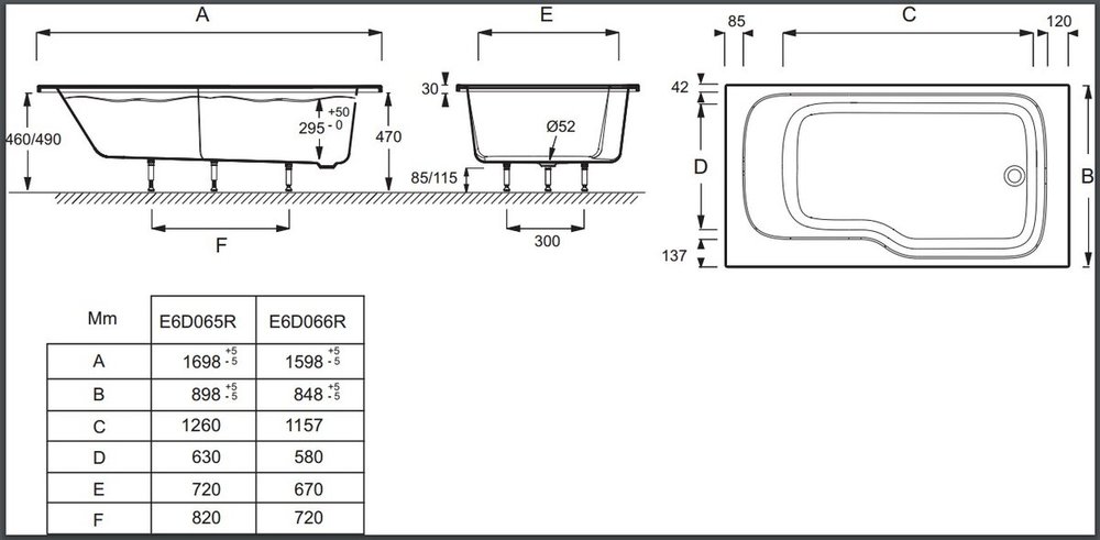 Ванна акриловая Jacob Delafon Bain Douche Malice E6D065-00 L/R, 170 х 90 см