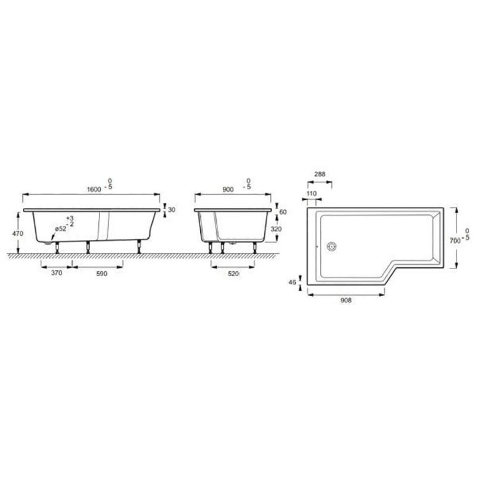 Ванна акриловая Jacob Delafon Bain Douche Neo E6D000-00 160 х 90 х 70, с ножками, левая/правая