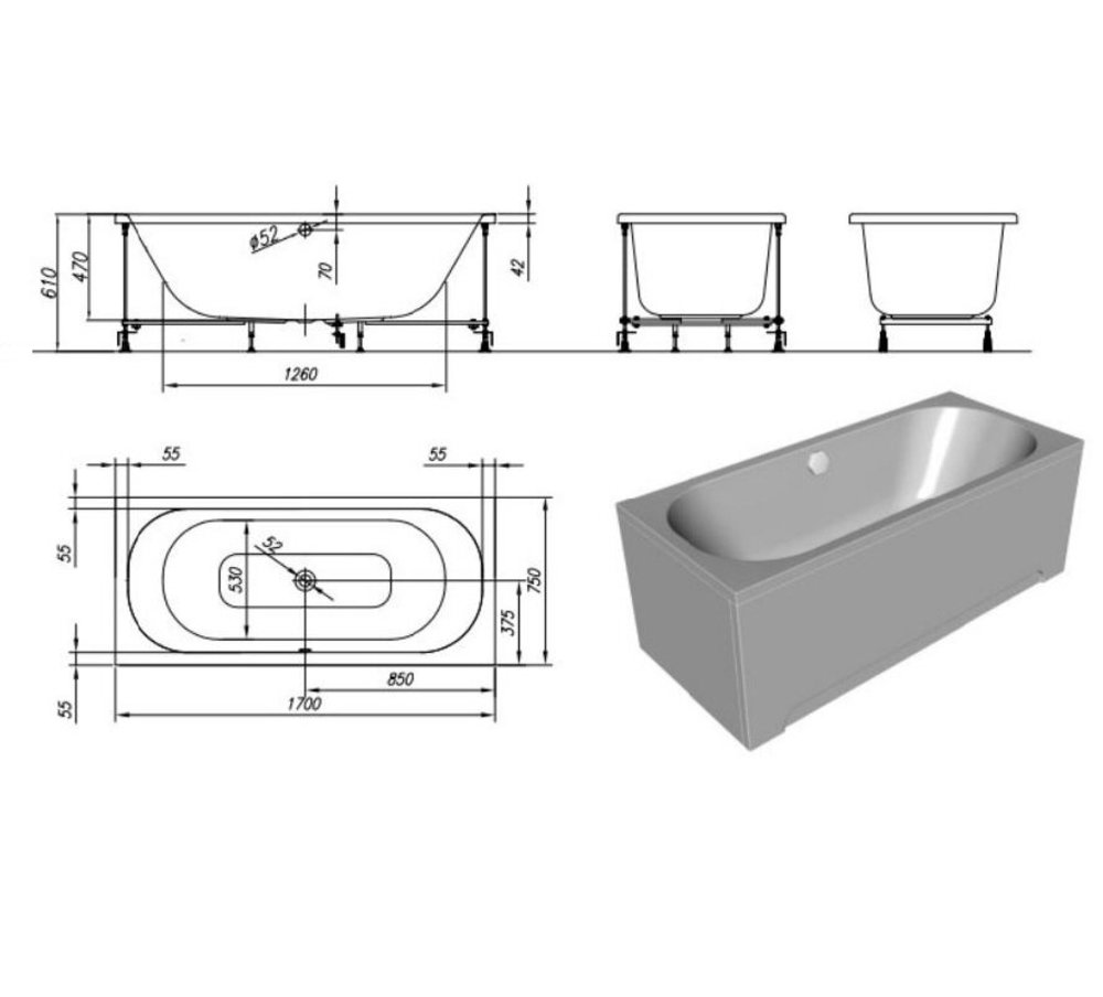 Собранная ванна на каркасе, со сливом-переливом ALCA PLAST, в индивидуальной брендированной картонной коробке с усилением. Вся ванна выполнена в белом глянцевом цвете.
