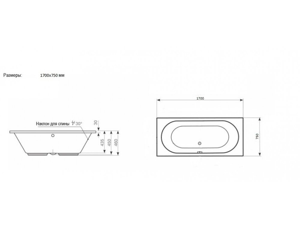 Ванна акриловая Mauersberger Ausana 1017001290 170 х 75 см, белый матовый