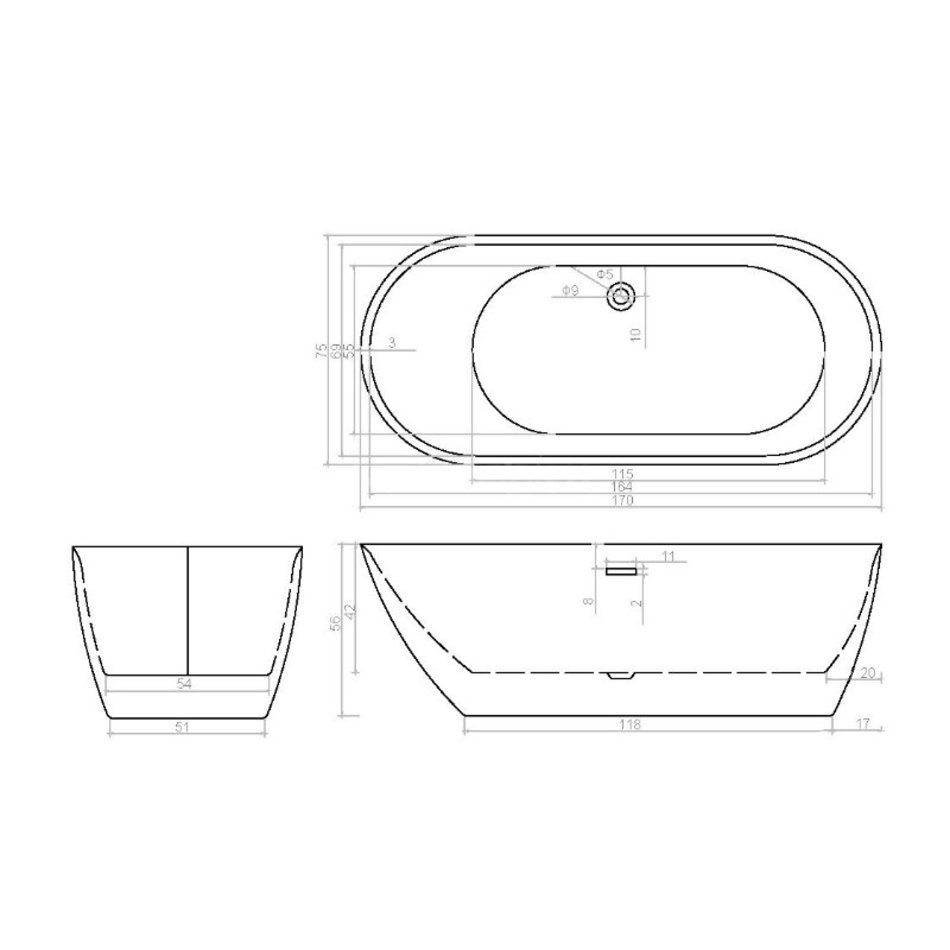 Ванна акриловая отдельностоящая Ceruttispa Como MB, CT9904, 170 x 75 см, черная матовая