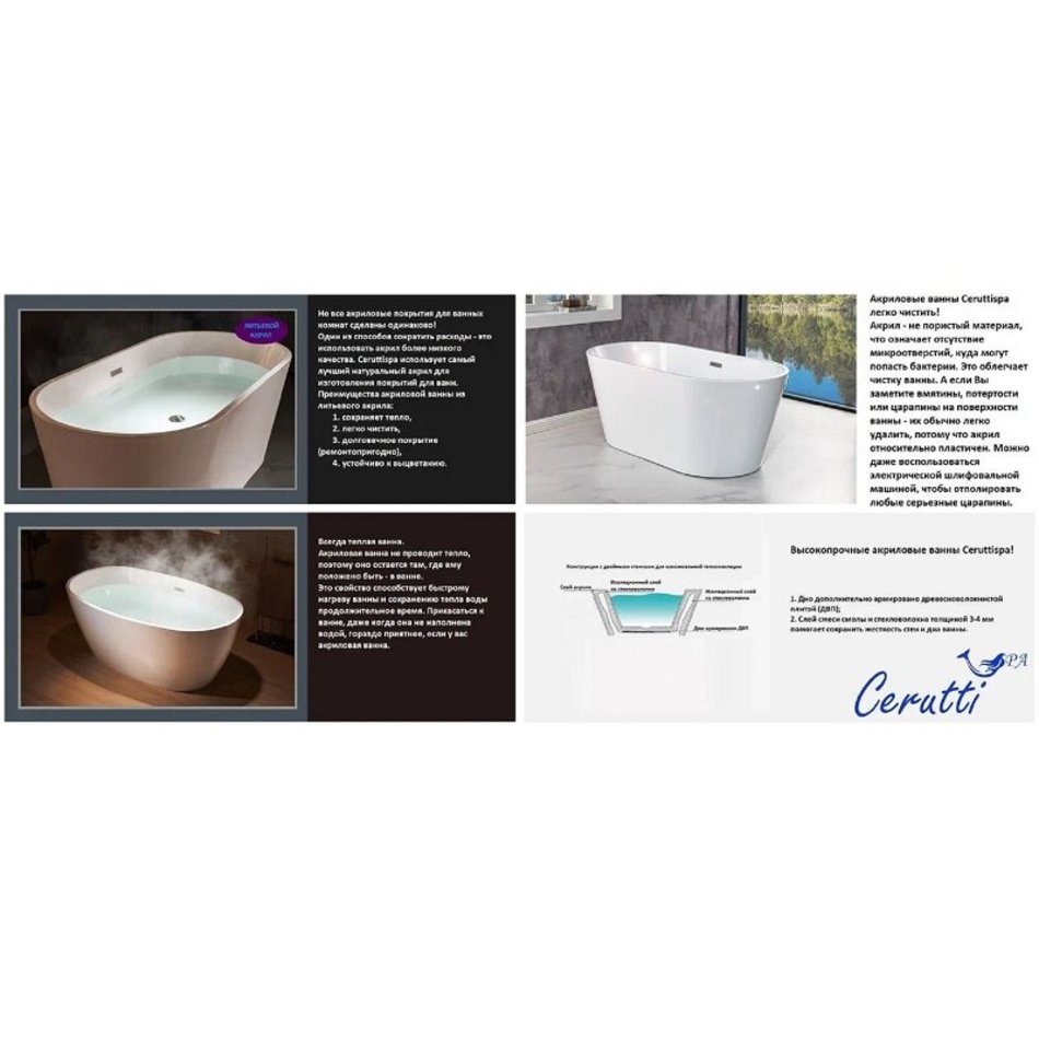 Ванна акриловая отдельностоящая Ceruttispa Lugano CT9344, 170 х 75 см, белая