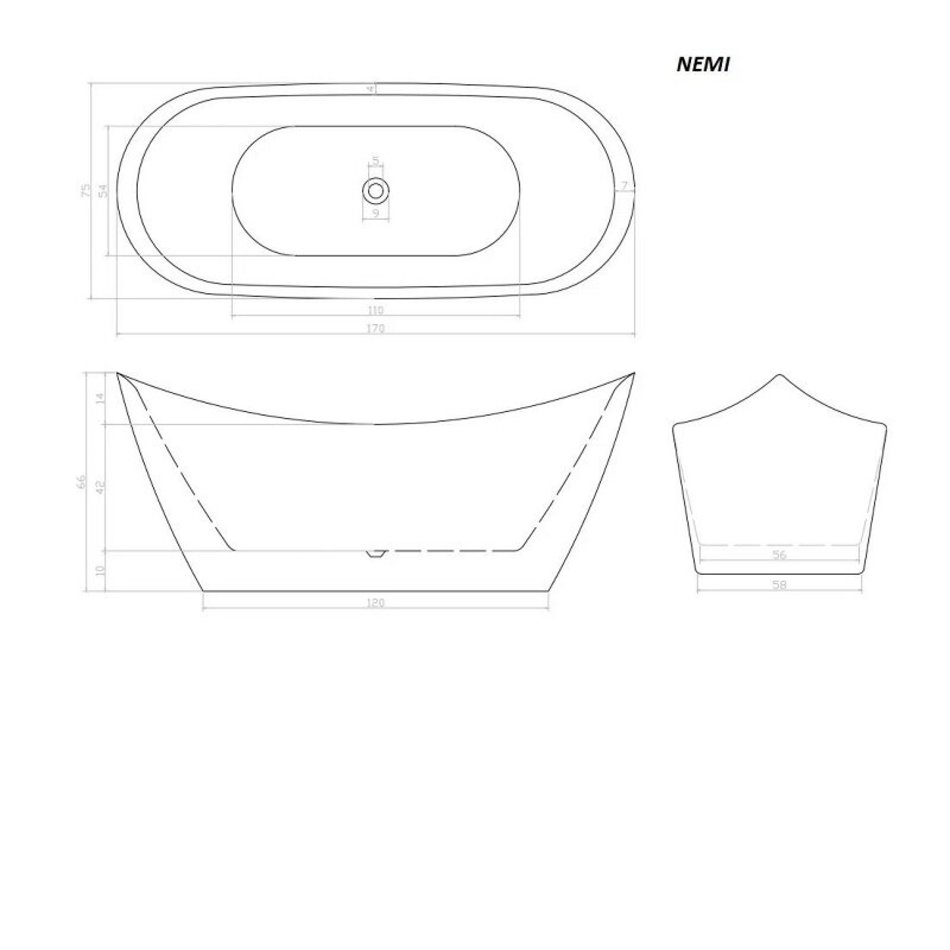 Ванна NEMI выполнена из качественного акрила, который хорошо сохраняет тепло и тактильно приятен. Устойчивость и практичность ванны достигается армированием дна стекловолокном и использованием прочного металлического каркаса. Помимо этого, в местах крепежа каркаса установлены дополнительные усиленные закладные для придания жесткости конструкции, что гарантирует максимально долгий срок эксплуатации ванны.
