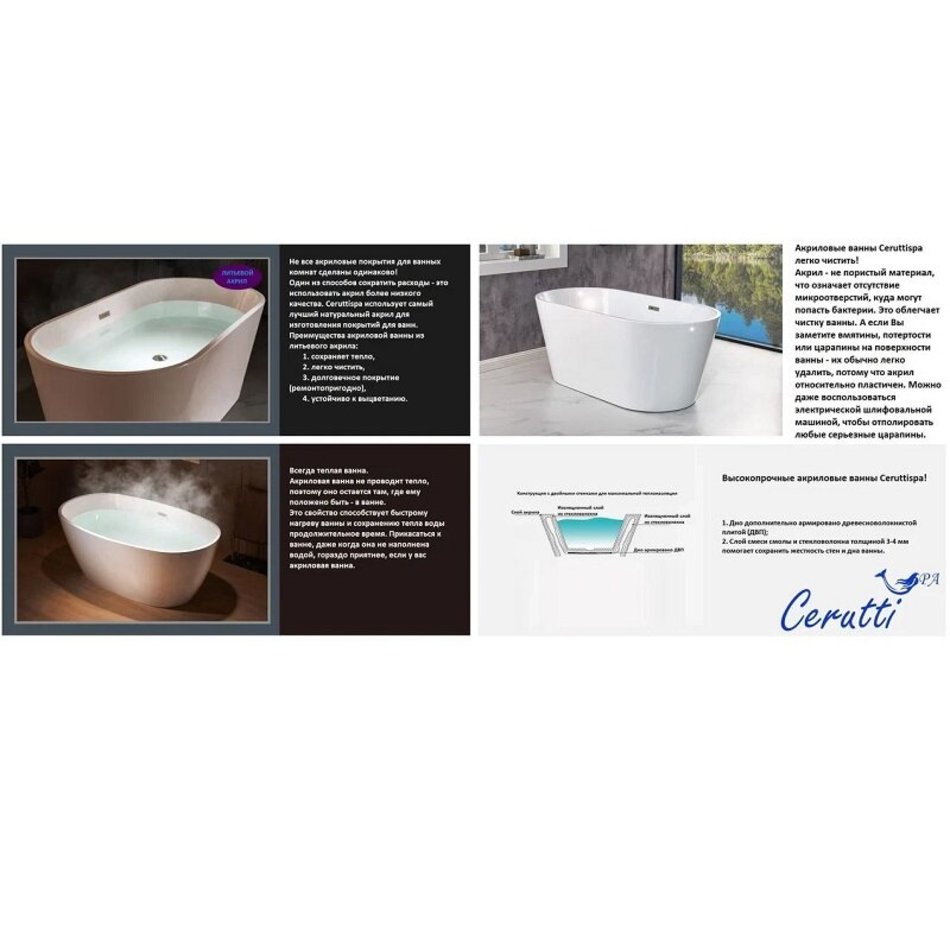 Ванна акриловая отдельностоящая Ceruttispa Nemi CT9319, 170 x 75 см, белая