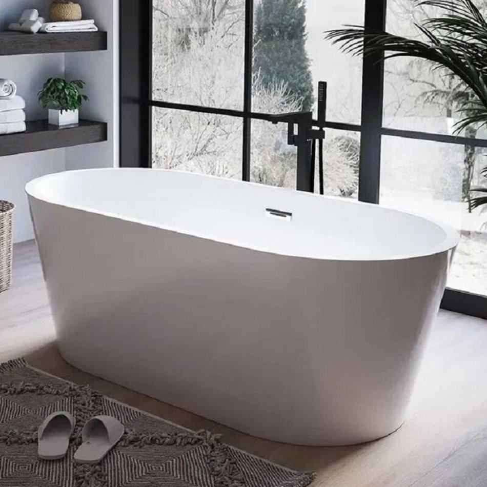 Акриловая отдельностоящая ванна RESIA бренда Ceruttispa в современном стиле Modern c антискользящим покрытием выполнена в классическом белом цвете и имеет практичную форму овала .