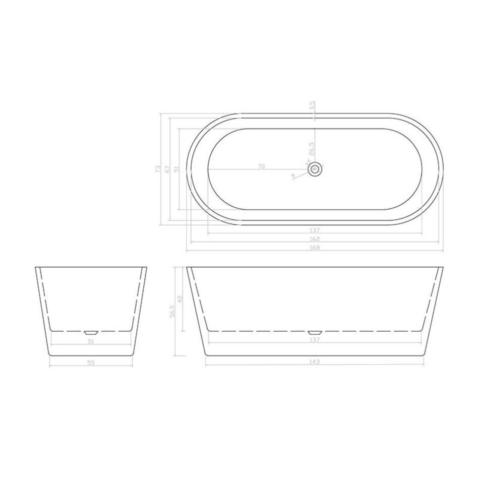 Ванна акриловая отдельностоящая Ceruttispa Resia MB, CT9905, 168 x 73 см, черная матовая