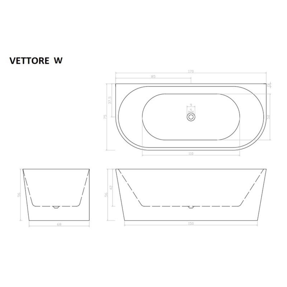 Ванна VETTORE выполнена из качественного акрила, который хорошо сохраняет тепло и тактильно приятен. Устойчивость и практичность ванны достигается армированием дна стекловолокном и использованием прочного металлического каркаса. Помимо этого, в местах крепежа каркаса установлены дополнительные усиленные закладные для придания жесткости конструкции, что гарантирует максимально долгий срок эксплуатации ванны.