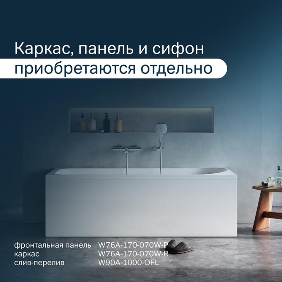 Ванна акриловая 1700*700*435 мм, белая, объем 187 л, толщина листа - 5-7 мм (с учетом армирующего слоя). Максимальная нагрузка: до 400 кг. Без слива-перелива. Ванны AM.PM Sense New производятся из высококачественных европейских материалов. Для армирования ванн используется смола (без использования стирола – отсутствие запаха и вредных выделений), которая обеспечивает повышенную прочность. Фронтальная панель для ванны (W76A-170-070W-P) и каркас (W76A-170-070W-R) - приобретаются отдельно.