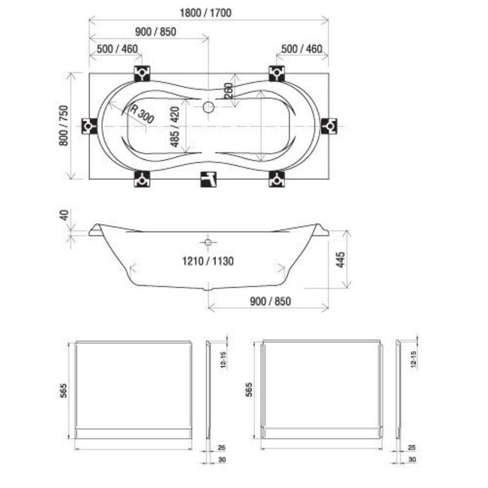 Акриловые ванны предлагают практически неограниченные возможности для создания различных форм. И традиционная прямоугольная ванна может иметь необычное внутреннее пространство с эргономичными углублениями, подлокотниками, более или менее прямую форму спинной и боковых частей ванны. Одним словом, прямоугольник может таить в себе множество неожиданных приятных сюрпризов.