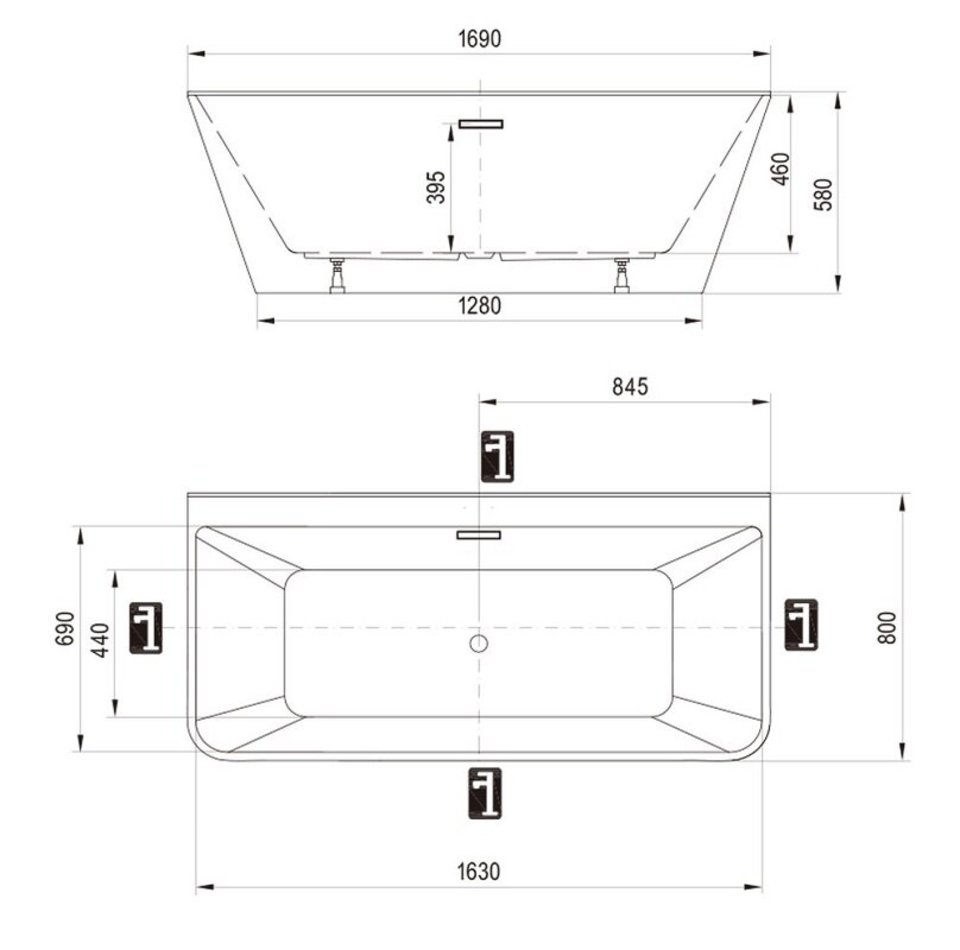 Допустимые отклонения по длине и ширине ванны составляют ± 5 мм