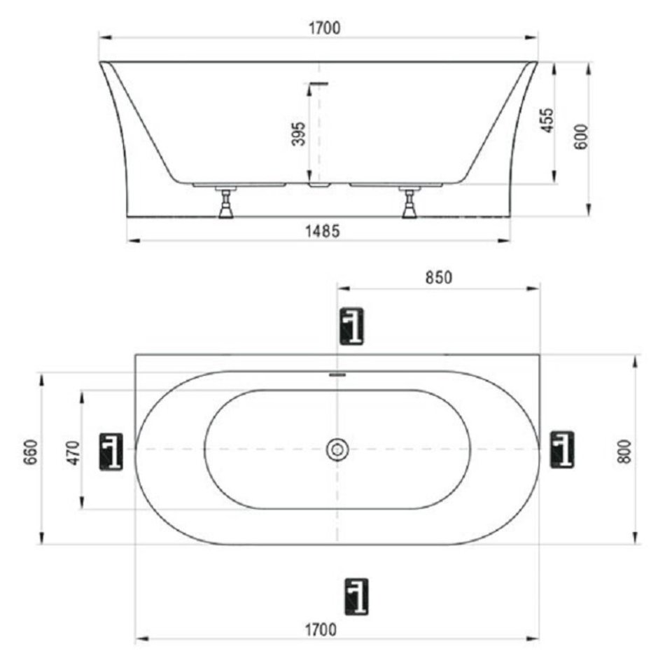 Допустимые отклонения по длине и ширине ванны составляют ± 5 мм