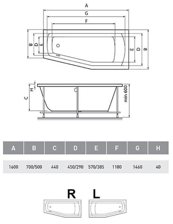 Ванна акриловая Relisan Aquarius, 160 х 70 см, левая/правая