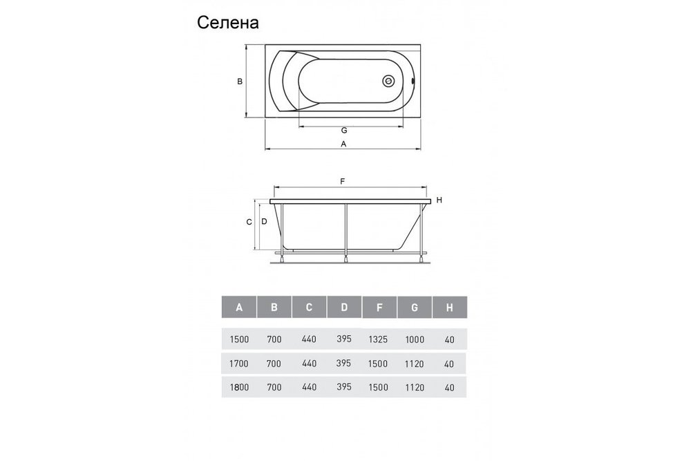 Ванна акриловая Relisan Eco Plus Селена, 170 х 70 см, белая, Гл000025995