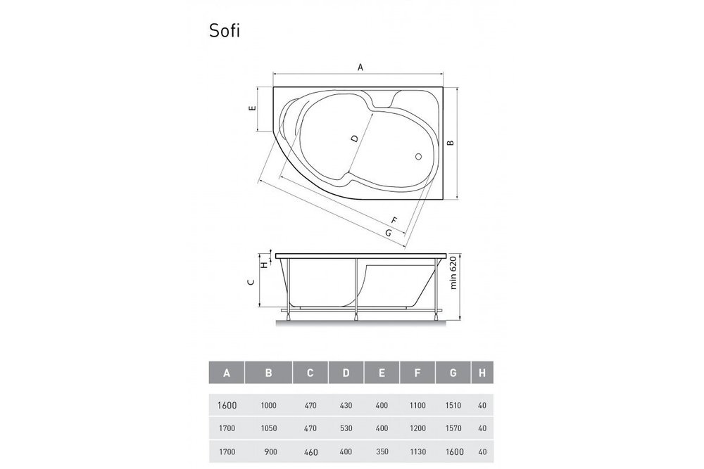 Ванна акриловая Relisan Sofi Гл000026239 R, 170 х 90 см, белая