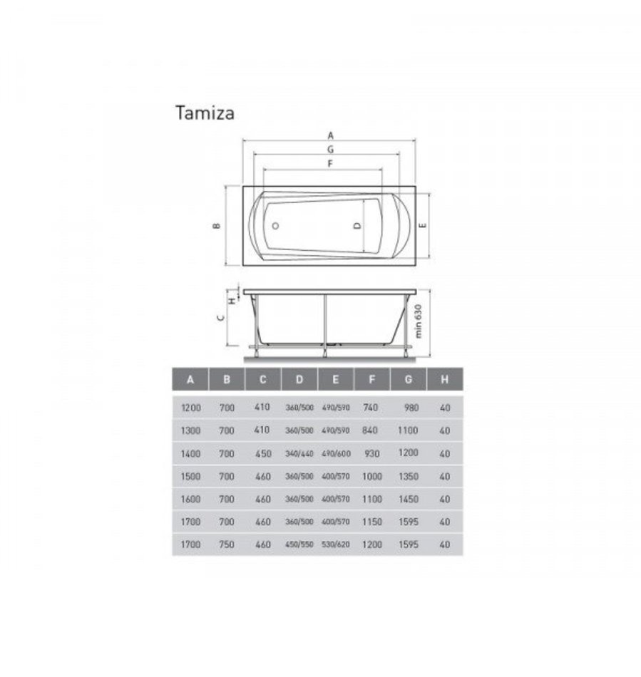 Ванна акриловая Relisan Tamiza 130 x 70 см, Гл000025051, белый