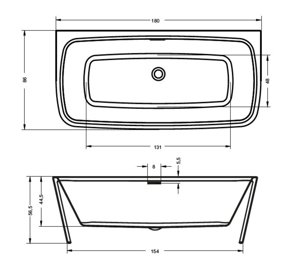Ванна акриловая Riho Adore FS 180 x 86 см B086001005, без гидромассажа, белая