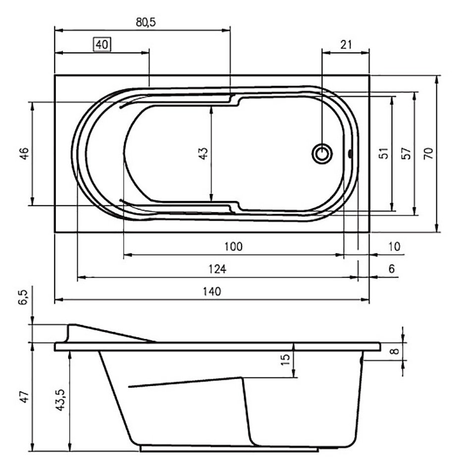 - Размер ванны: 1400*70*47 мм