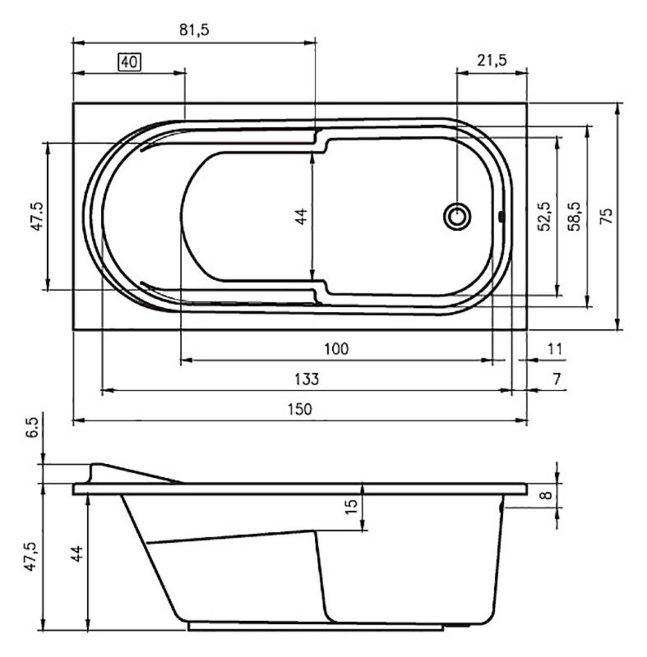 Ванна акриловая Riho Columbia 150 арт. BA0200500000000, 150*75 см