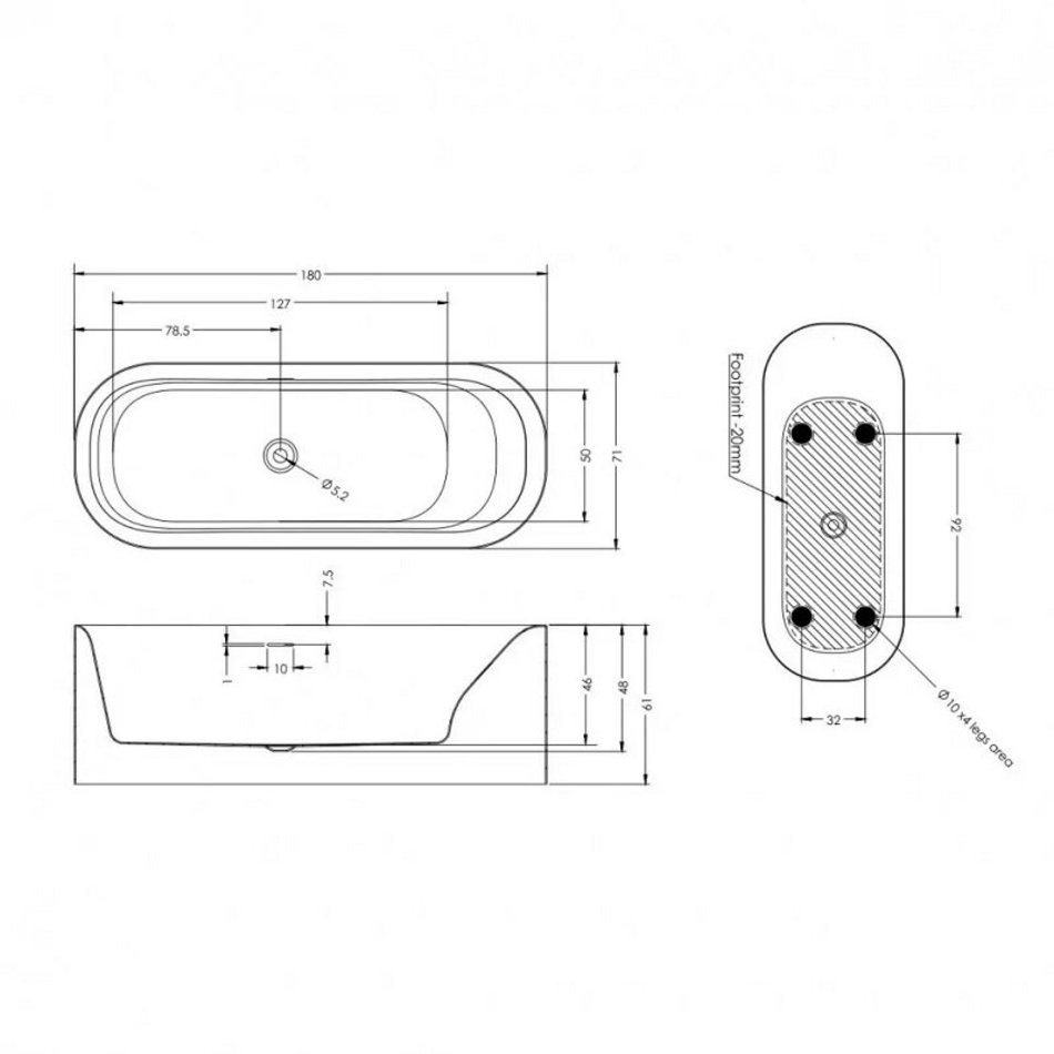 Ванна акриловая Riho Devotion Free B095001005, 180 x 71 см, цвет белый