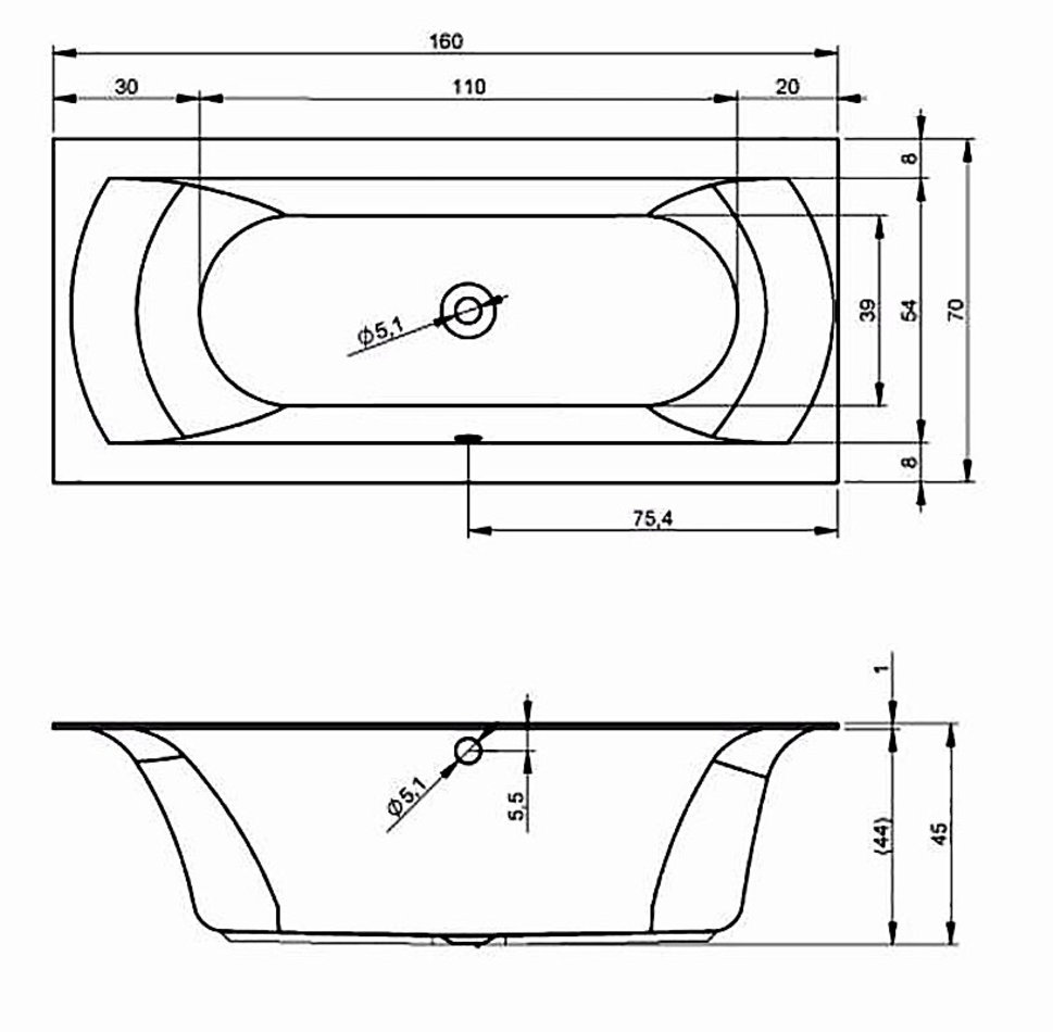 Ванна акриловая Riho Linares 160 x 70 см, цвет белый