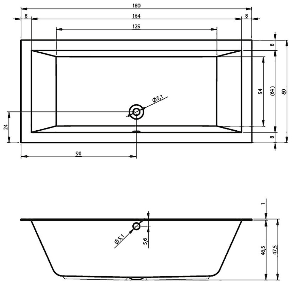 Ванна акриловая Riho Lugo Velvet 180 x 80 см B133001105, с тонким бортиком, цвет белый матовый
