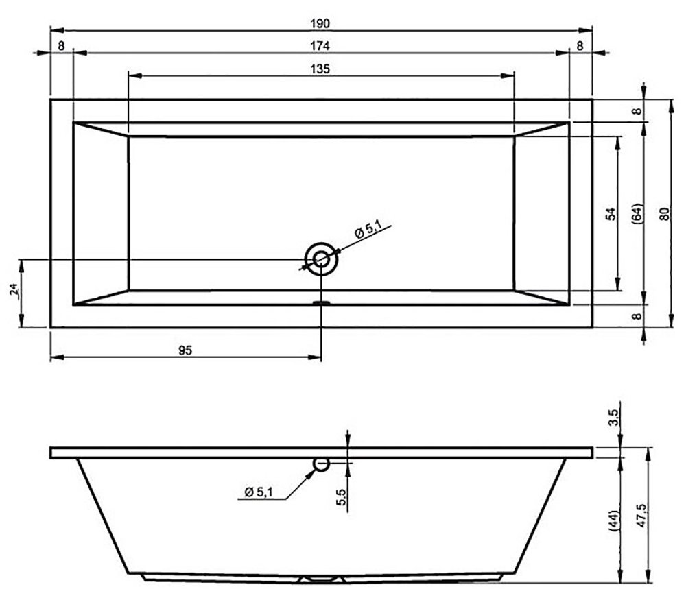 Ванна акриловая Riho Lusso 190 x 80 см, цвет белый, (BA5900500000000(B015001005))