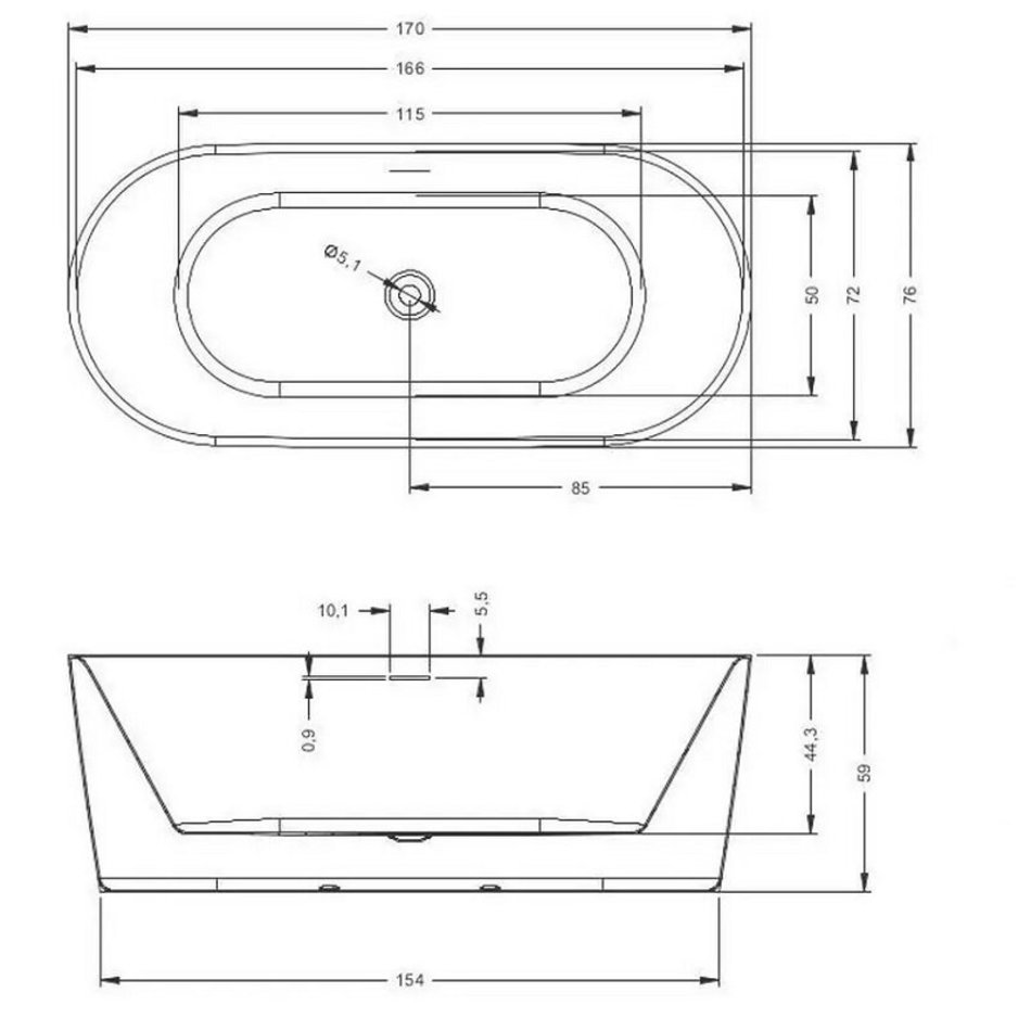 Ванна акриловая Riho Modesty Fall B090005005, заполнением через перелив, 170 x 76 см, цвет белый