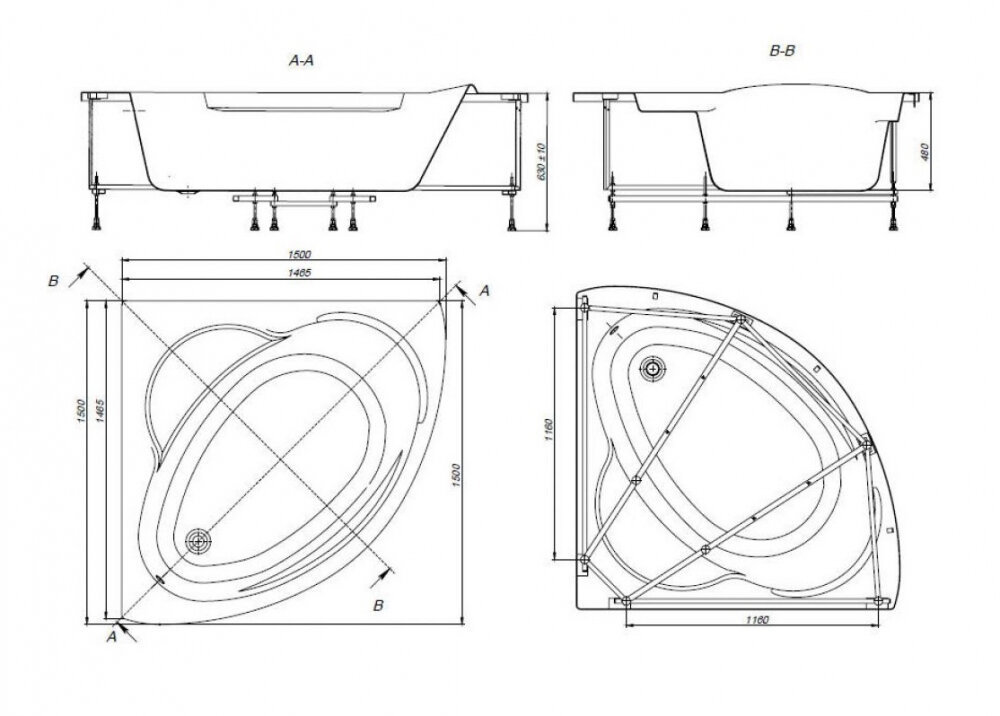 Ванна акриловая Roca Bali 150 x 150 см, 7.2486.3.900.0, четверть круга, белый