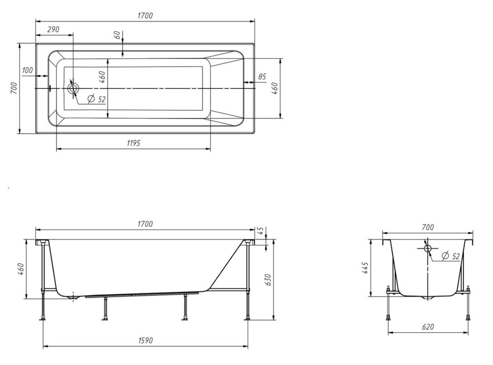 Ванна акриловая Roca Leon 7.2486.5.800.0 170 x 70 см, белый
