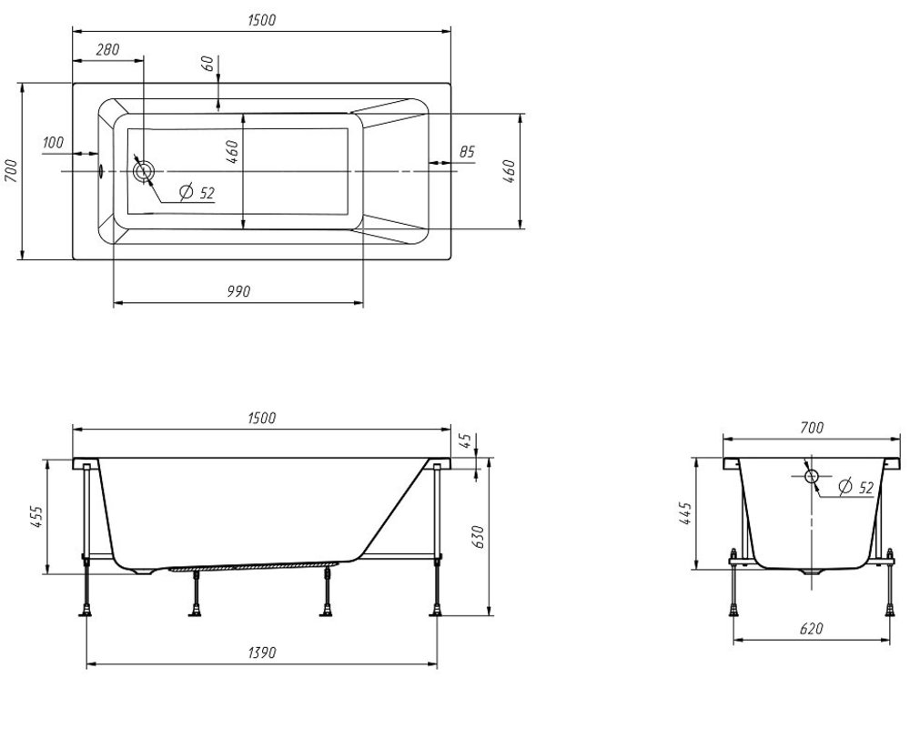 Фронтальная и боковая панели заказываются отдельно. Монтажный комплект заказывается отдельно. Монтажный комплект: (каркас, комплект креплений к стене, система слив-перелив полуавтомат).