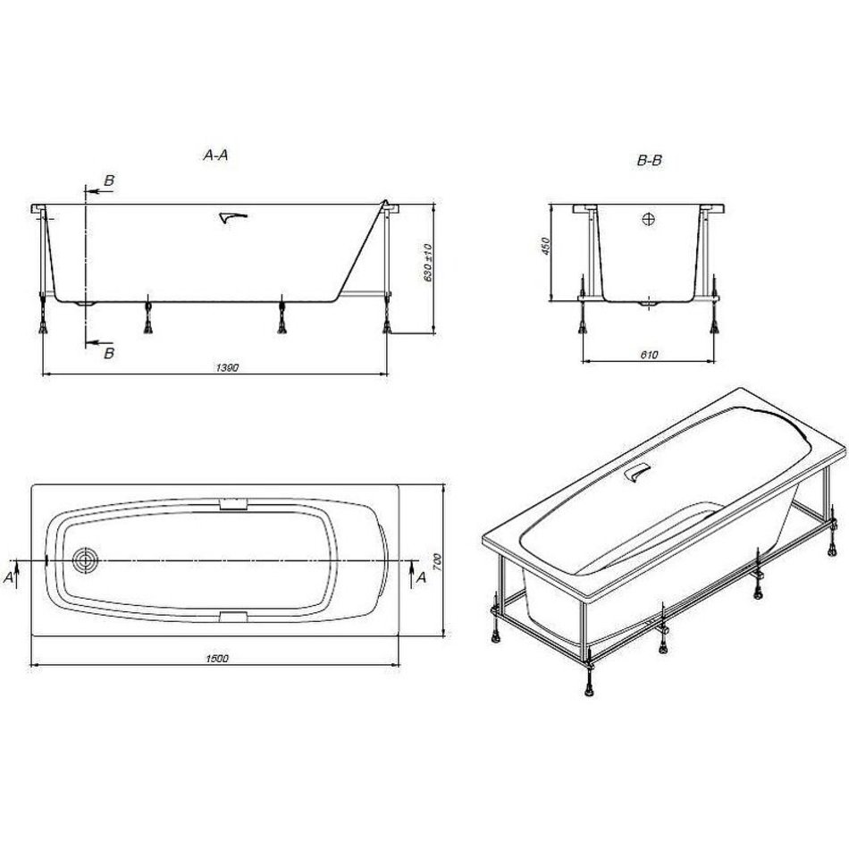 - Габариты: длина 1500 мм; ширина 700 мм; высота 450 мм.