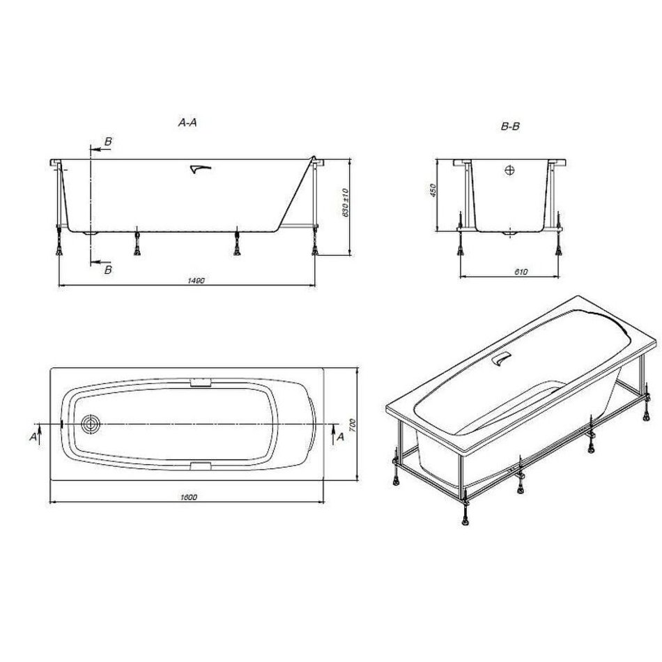 - Габариты: длина 1600 мм; ширина 700 мм; высота 450 мм.