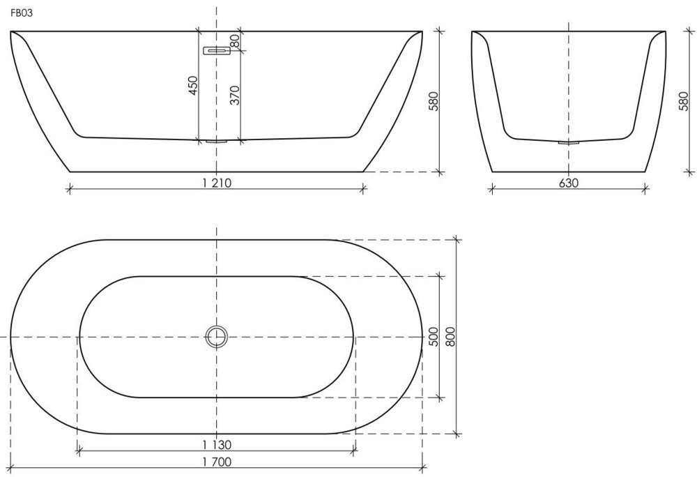 Ванна акриловая Sancos 170 х 80 см, овальная, белый, FB03