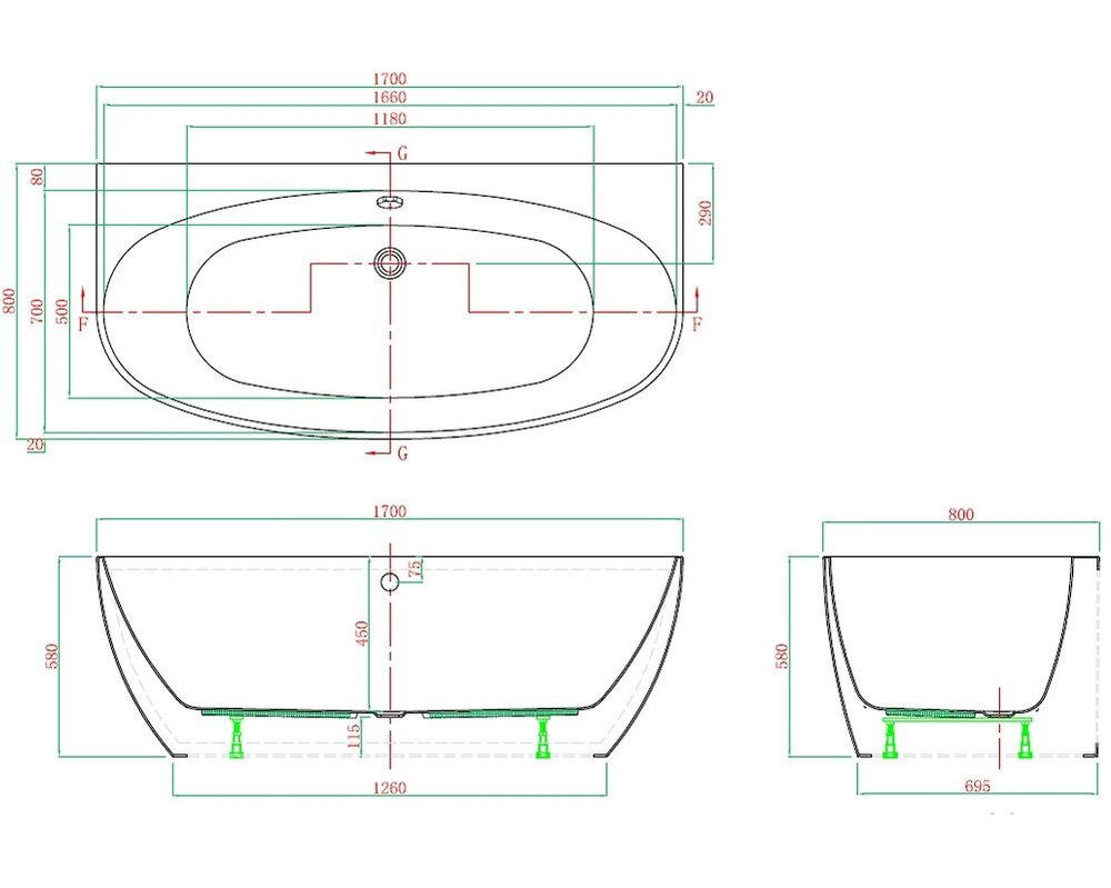 Ванна акриловая Vagnerplast Benin 170 x 80 см, белая, KRBV178BEN9X-64