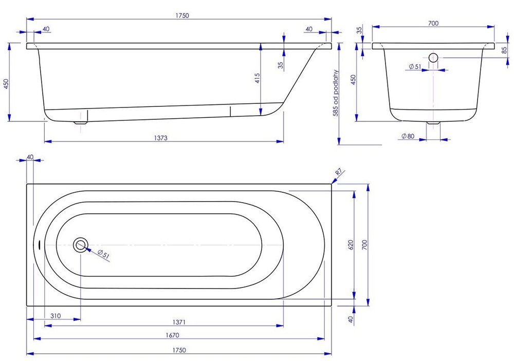 Ванна акриловая Vagnerplast Kasandra 175 х 70 см, белая (VPBA175KAS2X-04)