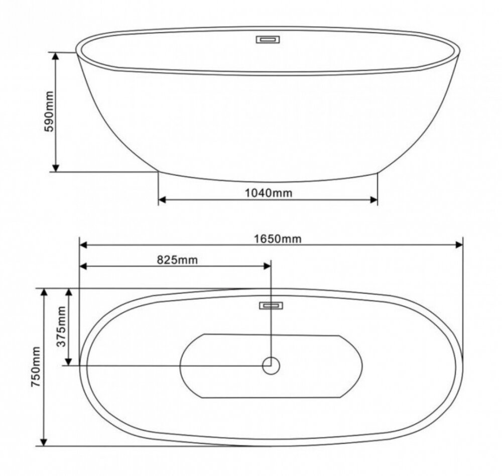Ванна акриловая Vincea VBT-509, 165 x 75 см, слив-перелив хром в комплекте, белая