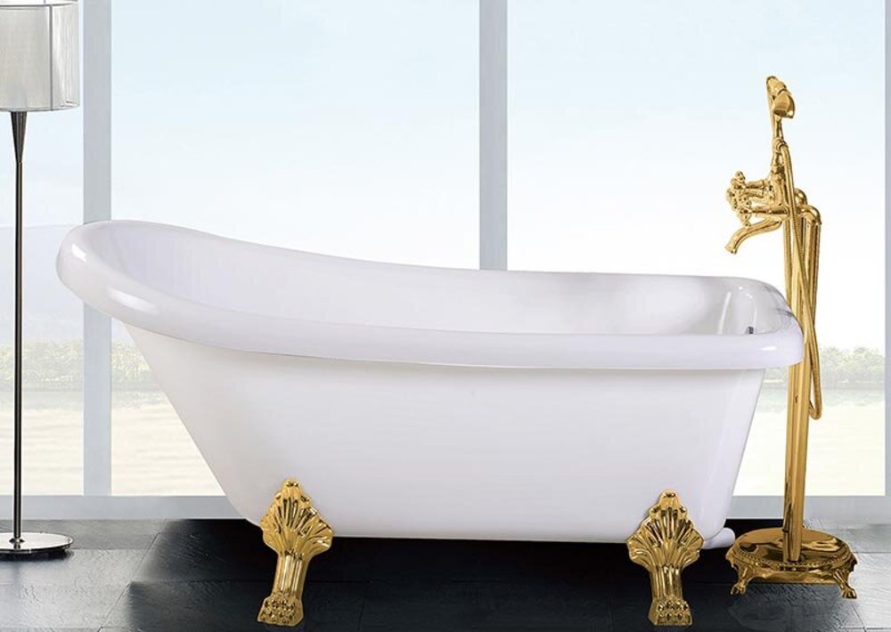 Ванна акрловая отдельностоящая Ceruttispa Vito 150G, CT9669, 155 x 74 см на львиных лапах золото, белая