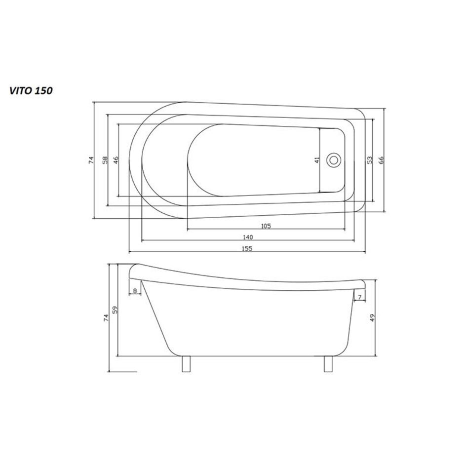 Ванна VITO выполнена из качественного акрила, который хорошо сохраняет тепло и тактильно приятен. Завышенная спинка ванны обеспечивает максимально удобное положение тела во время водных процедур.