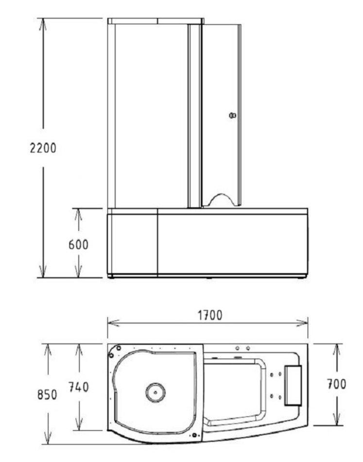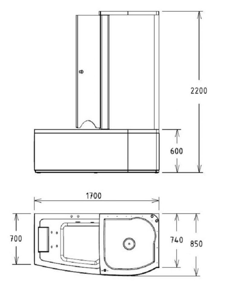 Ванна гидромассажная акриловая Gemy G8040 B L/R, 170 х 85 х 220 см