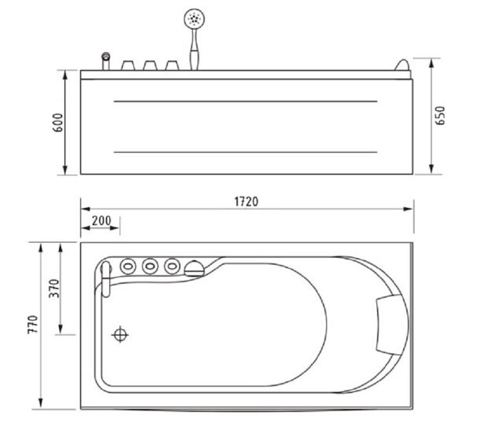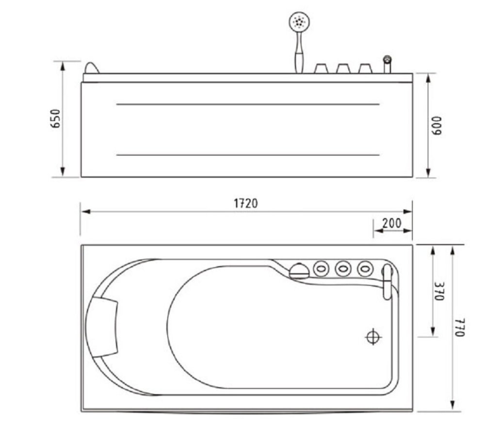 Ванна гидромассажная акриловая Gemy G9006-1.7 B L/R, 172 х 77 x 65 см