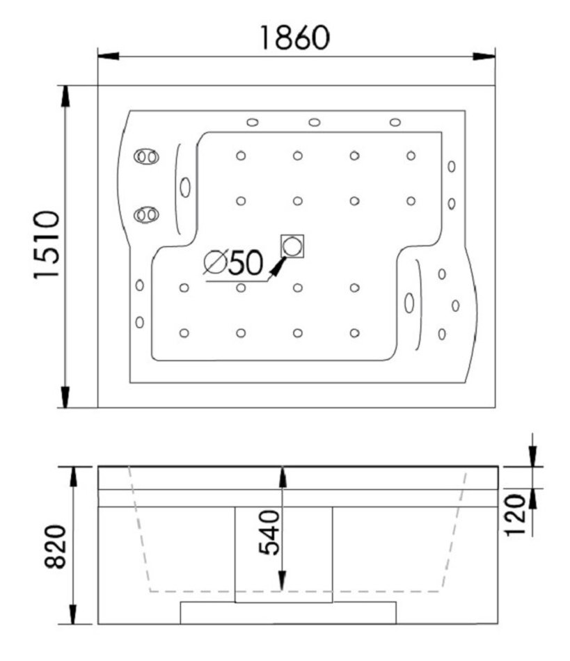 Ванна гидромассажная акриловая Gemy G9052 II K L/R, 186 х 151 см