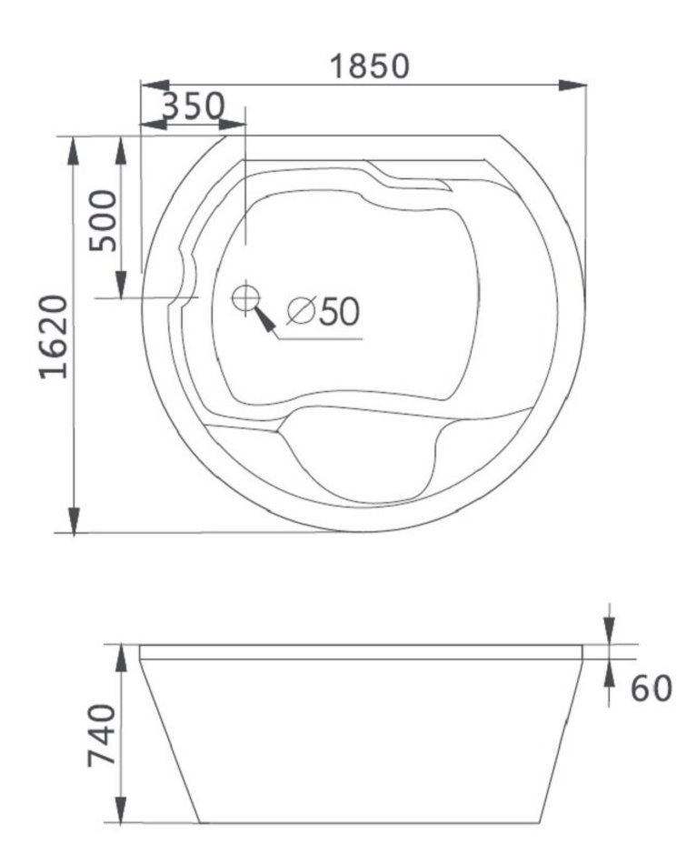 Ванна гидромассажная акриловая Gemy G9053 K, 185 х 162 см