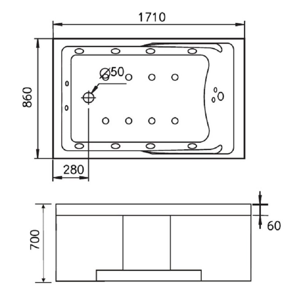 Ванна гидромассажная акриловая Gemy G9066 II O L/R, 171 х 86 см