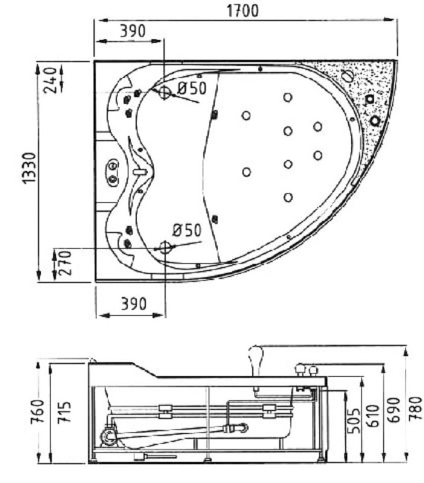 Ванна гидромассажная акриловая Gemy G9086 O L/R, 170 х 133 см