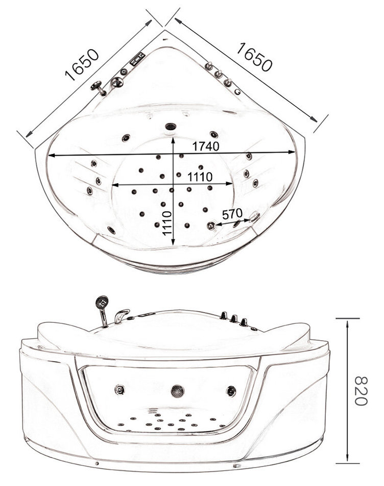 Ванна гидромассажная акриловая Gemy G9247 K, 165 х 165 х 82 см